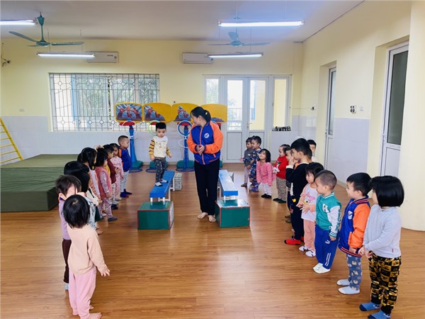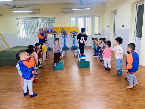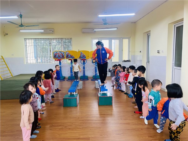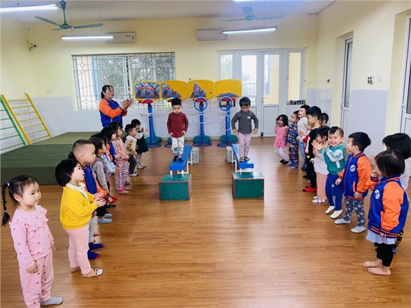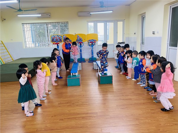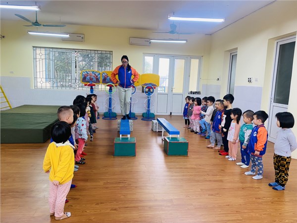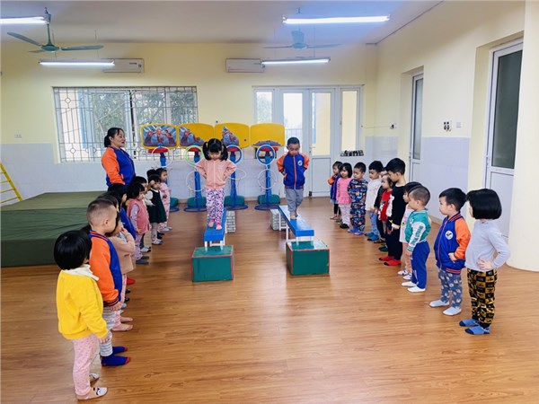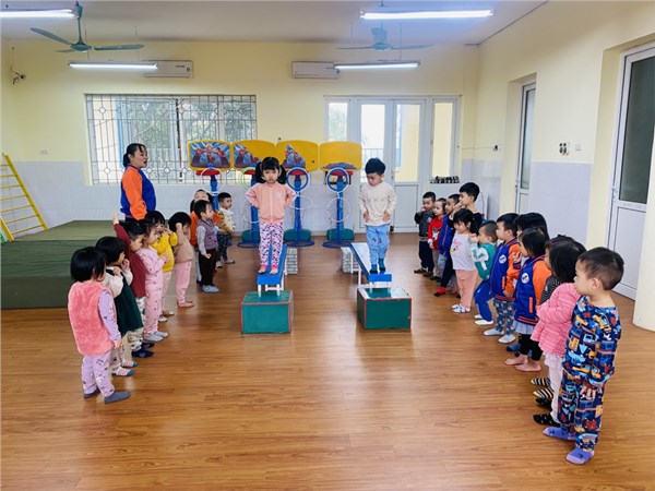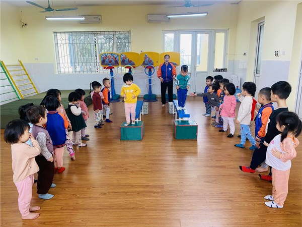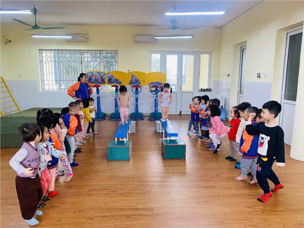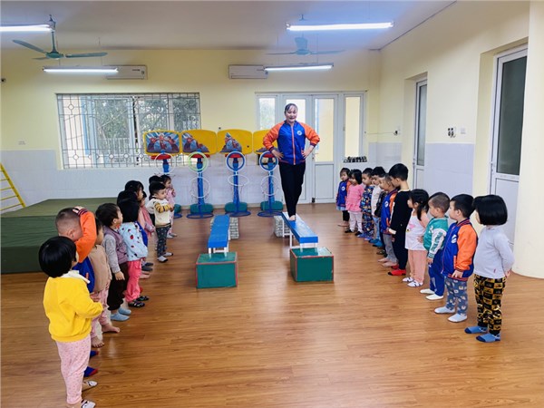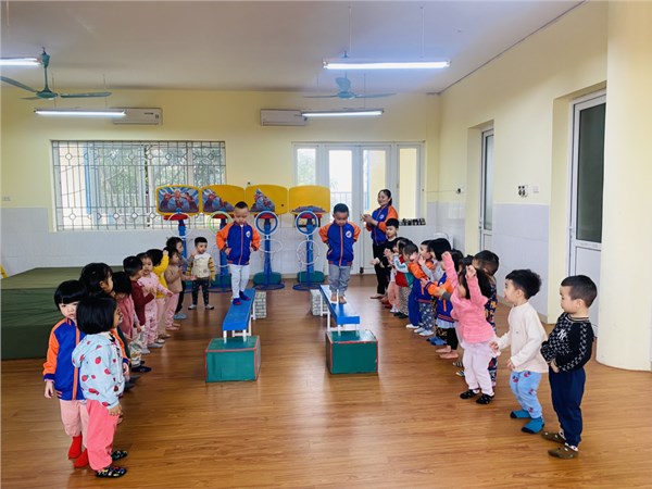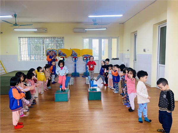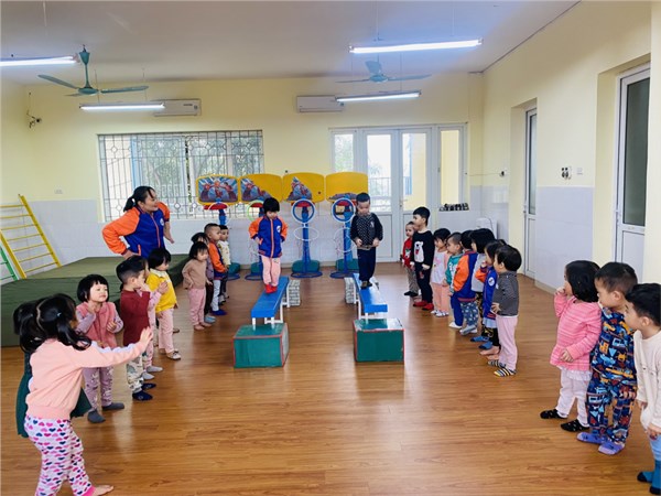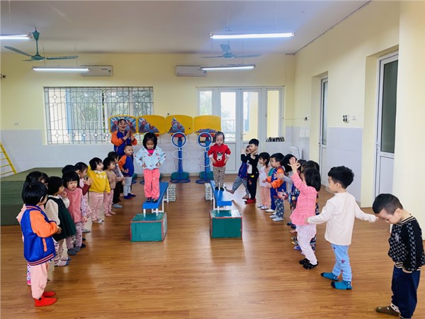 Tập ảnh : Các bạn nhỏ lớp C2 trường MN Việt Hưng trong giờ học vận động.