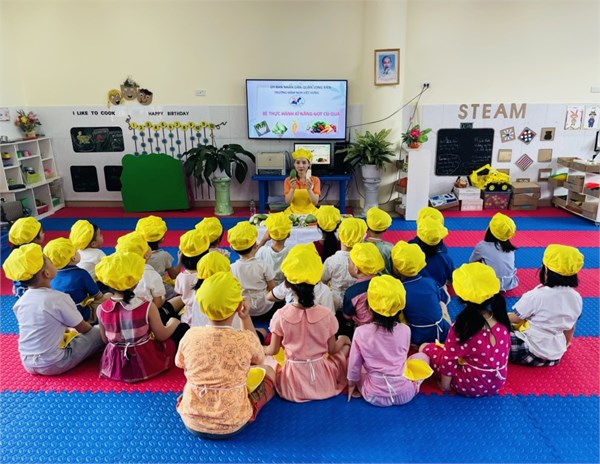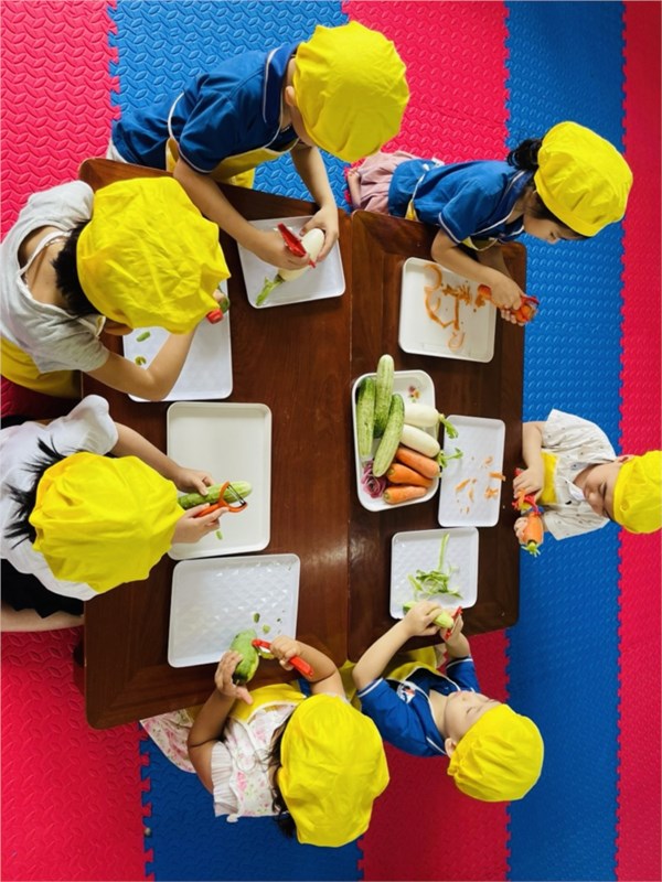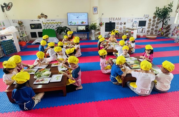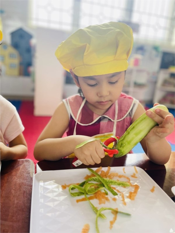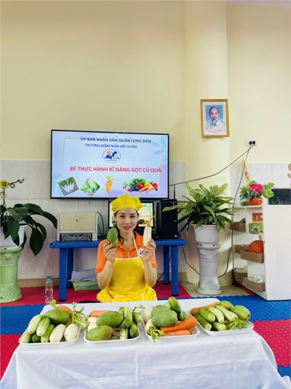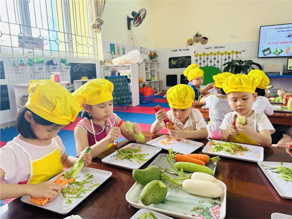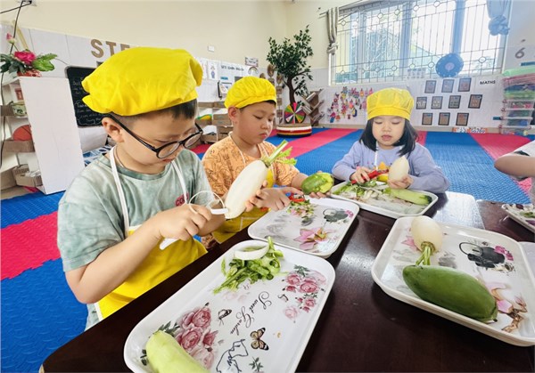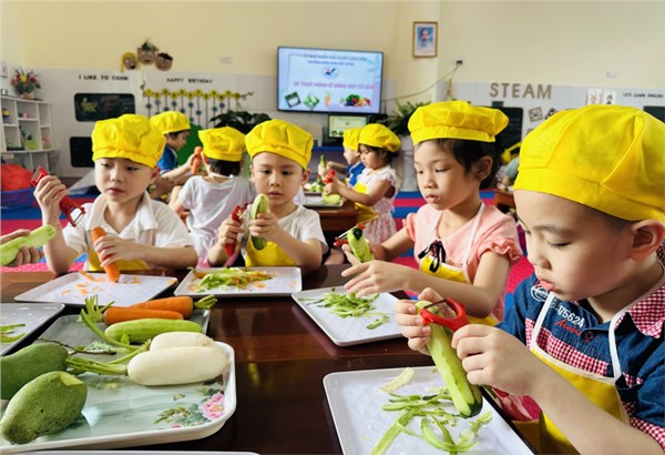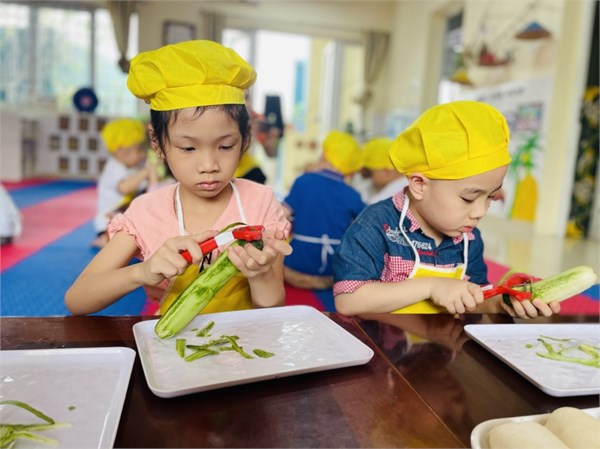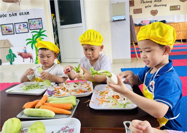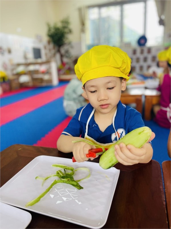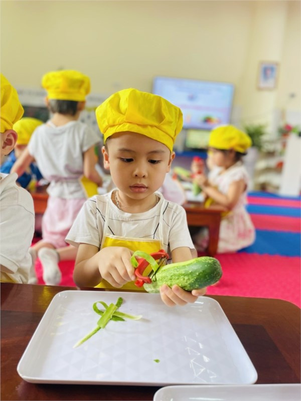 Tập ảnh : Các bé lớp A2 trường MN Việt Hưng thực hành kỹ năng: nạo gọt củ, quả