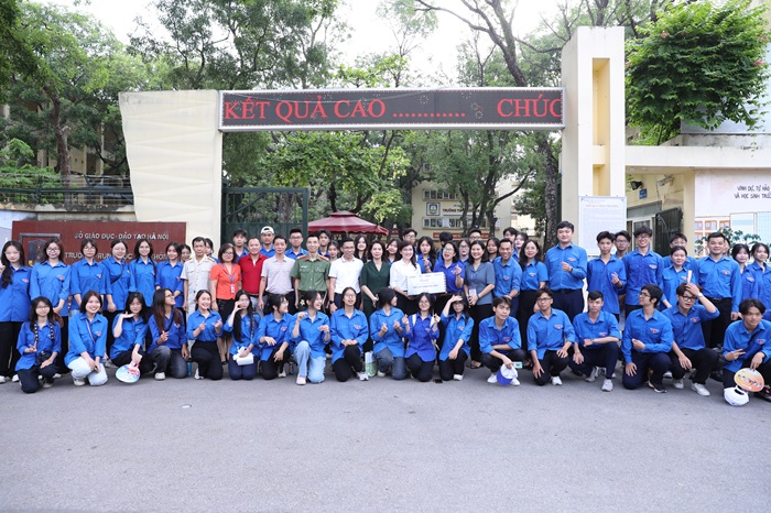 Đoàn thanh niên quận Long Biên hỗ trợ nước uống cho các thí sinh