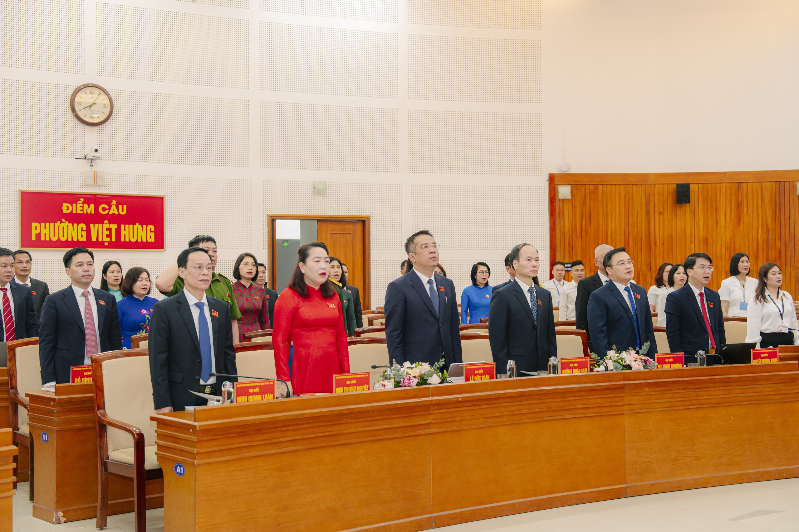 26 đại biểu trúng cử HĐND phường Việt Hưng khóa II, nhiệm kỳ 2026-2031 ra mắt và nhận Giấy chứng nhận tư cách đại biểu.
