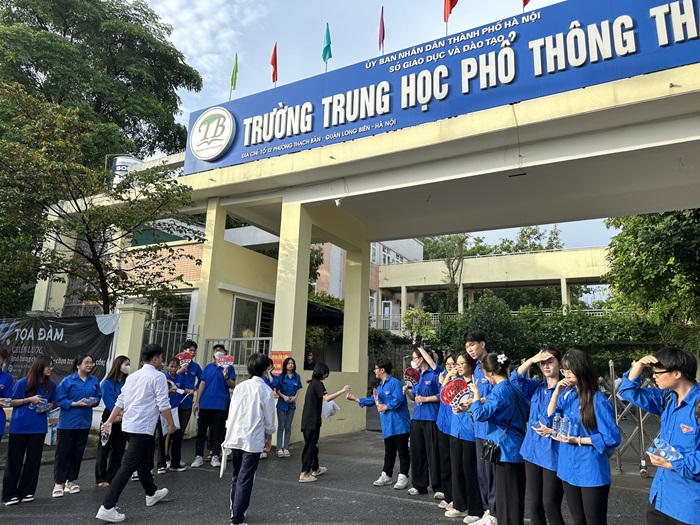 * Sáng 8/6, hơn 4.000 thanh niên tình nguyện Thủ đô cũng đã hỗ trợ thí sinh và người nhà tại 201 điểm thi vào 10 THPT. Cùng đó là hoạt động phát tặng các vật phẩm thiết yếu cho thí sinh và người nhà thí sinh như nước uống, sữa, đồ dùng học tập, quạt cầm tay…