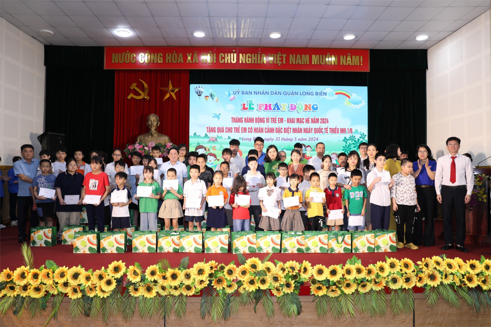 Nhân ngày Quốc tế thiếu nhi 1/6, UBND quận đã trao tặng gần 500 suất quà, kinh phí gần 250 triệu đồng cho trẻ em đặc biệt; các ngành, các phường đã vận động xã hội hóa các nguồn lực để hỗ trợ tặng quà cho các em có hoàn cảnh khó khăn. Và tại Chương trình, với tinh thần “tương thân, tương ái” cùng trách nhiệm xã hội, Trung tâm Bách hóa Tổng hợp và Siêu thị AEON Long Biên đã trao tặng 100 suất quà bằng hiện vật cho trẻ em quận Long Biên. Nhà giáo Đặng Vũ Hiệp - Giáo viên Tổng phụ trách Đội của Trường Tiểu học Đoàn Kết cũng đã tuyên truyền, chia sẻ đến các em thiếu nhi, học sinh về các biện pháp phòng chống bạo lực, xâm hại, tai nạn thương tích ở trẻ em.