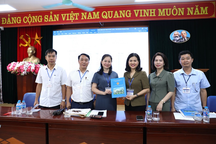 Phó trưởng điểm thi - Trường THPT Thạch Bàn báo cáo với Ban Chỉ đạo thi và tuyển sinh quận Long Biên về công tác tổ chức kỳ thi