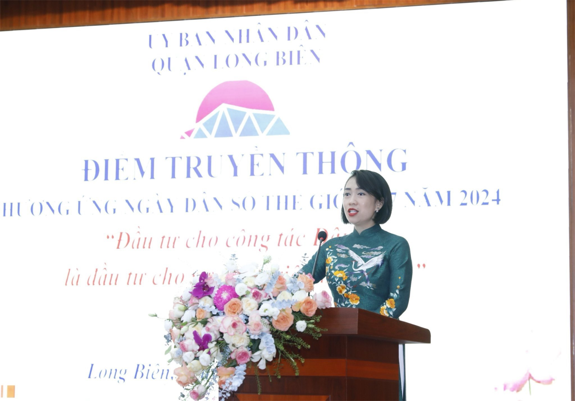 Hội nghị cũng đã được nghe bài phát biểu hưởng ứng Ngày Dân số thế giới của đồng chí Nguyễn Thị Ngọc Quý – Phó bí thư Quận đoàn - Phó chủ tịch Hội đồng Đội quận và đồng chí Trần Thu Hiền – Phó chủ tịch UBND phường Phúc Đồng. Các đồng chí đều nhất trí cao với bài diễn văn và báo cáo kết quả thực hiện công tác dân số trong 6 tháng đầu năm do Trung tâm Y tế quận báo cáo và thể hiện sự hưởng ứng, quyết tâm cao trong triển khai thực hiện tại đơn vị mình để hoàn thành thắng lợi các mục tiêu dân số đã đề ra trong năm 2024.