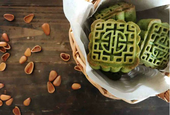 Phần vỏ thơm mát matcha quyện với nhân đậu làm cho bánh thêm hấp dẫn
