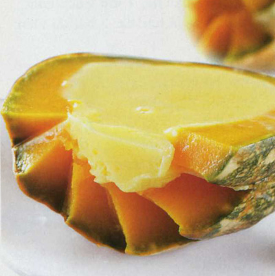 Mùi của bí ngô hòa quyện vào bánh flan làm cho mùi thơm của bánh rất quyến rũ, khi cắn vào lớp bánh mềm được bao bọc bởi vỏ dẻo của bí sẽ có cảm giác tuyệt ngon, đảm bảo bé yêu nhà bạn sẽ thích mê li cho coi @_@