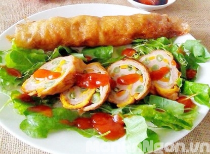 Bước 3: Cuộn lại chặt tay, dùng hành lá gói lại hoặc để nguyên vẫn được.