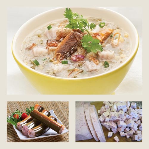 Nguyên liệu: 200g thịt lươn, 100g gạo, 100g khoai môn đã được thái nhỏ, hành tím, rau mùi, gia vị