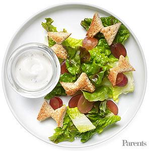 Thành phần chế biến món này gồm vài lát bánh mì, nho bỏ hạt và rau xà lách. Dùng kéo tạo hình bánh mì thành hình chú bướm ngộ nghĩnh, quét dầu ô liu lên hai mặt và cho vào nướng đến khi giòn rồi trộn với nho cắt đôi, xà lách cắt nhỏ.