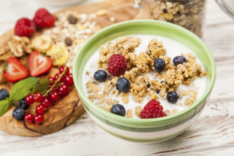 Các loại hạt, ngũ cốc kết hợp sữa chua.