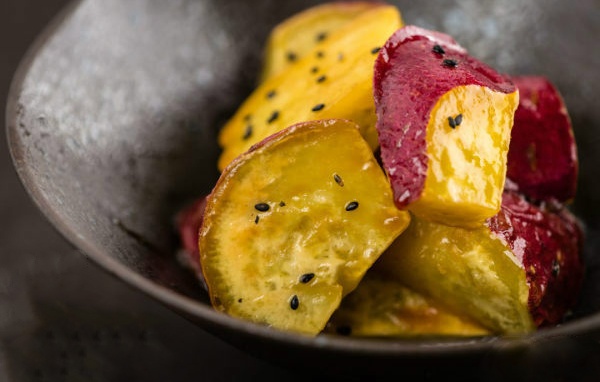 Món kẹo khoai lang có nguồn gốc từ Nhật Bản và được làm từ những nguyên liệu gần gũi, quen thuộc trong căn bếp của mọi gia đình như khoai lang, vừng đen, đường, xì dầu, giấm gạo...