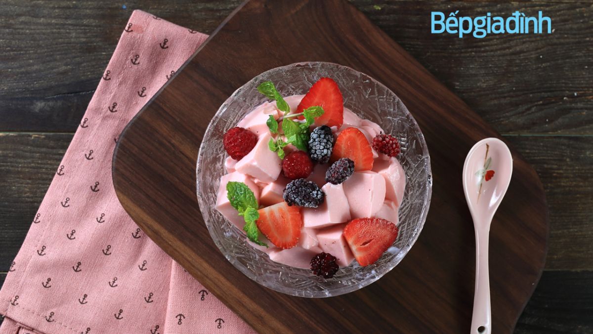 Sữa chua dẻo chua mịn, thêm vào mứt mâm xôi tự làm lại càng tuyệt. Tùy vào vị mong muốn mà bạn có thể điều chỉnh độ dẻo hay xốp của sữa chua dẻo dựa trên khối lượng gelatin và thời gian đông.