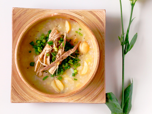 - Nguyên liệu nấu cháo: 1 con vịt khoảng 1,5kg, làm sạch, 200g gạo thơm, 200g đậu xanh nguyên hạt, 3 củ gừng tươi, 2 củ hành tím phi vàng, 2 thìa cà phê rượu trắng, 100g hành lá, mùi tàu.