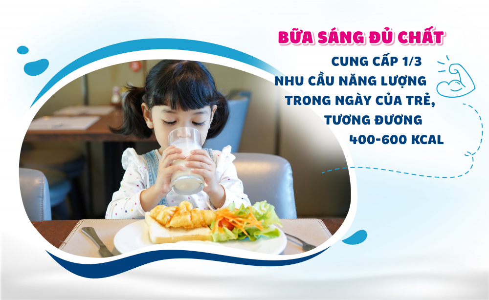Bác sĩ Dư Minh Trí bật mí, công thức cho một bữa sáng cân bằng là 15% protein (đạm), 25% chất béo và chất bột đường là 55%. Và, dù đã qua tuổi mầm non, trẻ em vẫn nên có thêm sữa trong khẩu phần bữa ăn sáng. Bởi vì, sữa tươi là nguồn cung cấp protein chất lượng cao và dễ tiêu hóa. Trong sữa có 2 loại protein chính là Casein và Whey, đều là protein chất lượng cao vì có chứa nhiều axit amin thiết yếu mà cơ thể không thể tự sản xuất. Các nghiên cứu dinh dưỡng đã chỉ ra rằng protein trong sữa là nhân tố vàng mà cơ thể hấp thu tốt nhất vào buổi sáng.