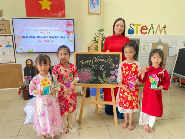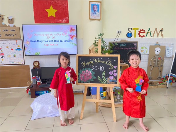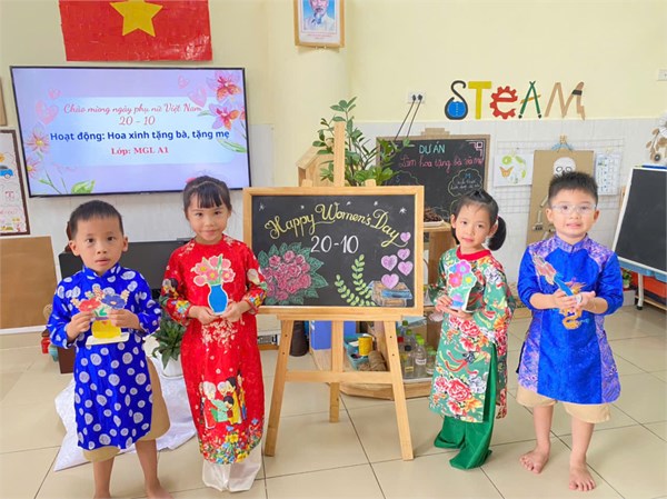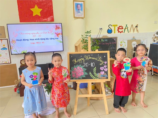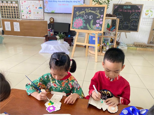 Tập ảnh : Hoạt động các bé lớp A1: Thiết kế hoa xinh tặng bà, tặng mẹ ngày 201/0