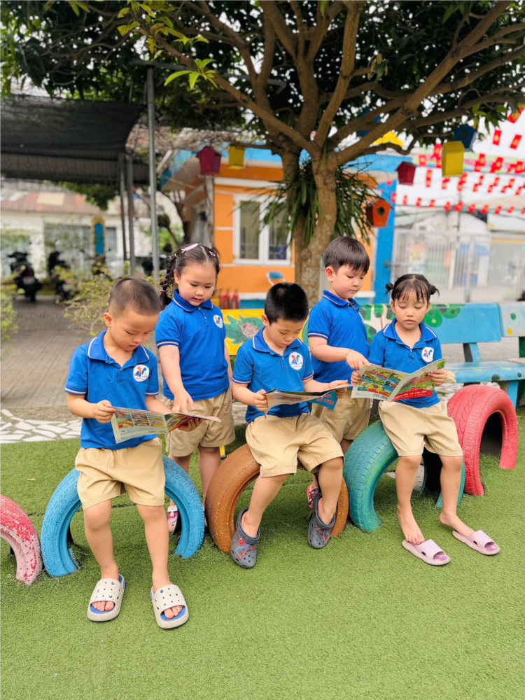 Trong không khí vui tươi, các bé được làm quen với nhiều cuốn sách hay, lắng nghe cô kể chuyện, xem tranh minh họa và cùng nhau trao đổi về nội dung câu chuyện. Hoạt động không chỉ giúp trẻ thêm yêu thích sách mà còn hình thành thói quen đọc sách ngay từ nhỏ, phát triển ngôn ngữ, trí tưởng tượng và kỹ năng giao tiếp.