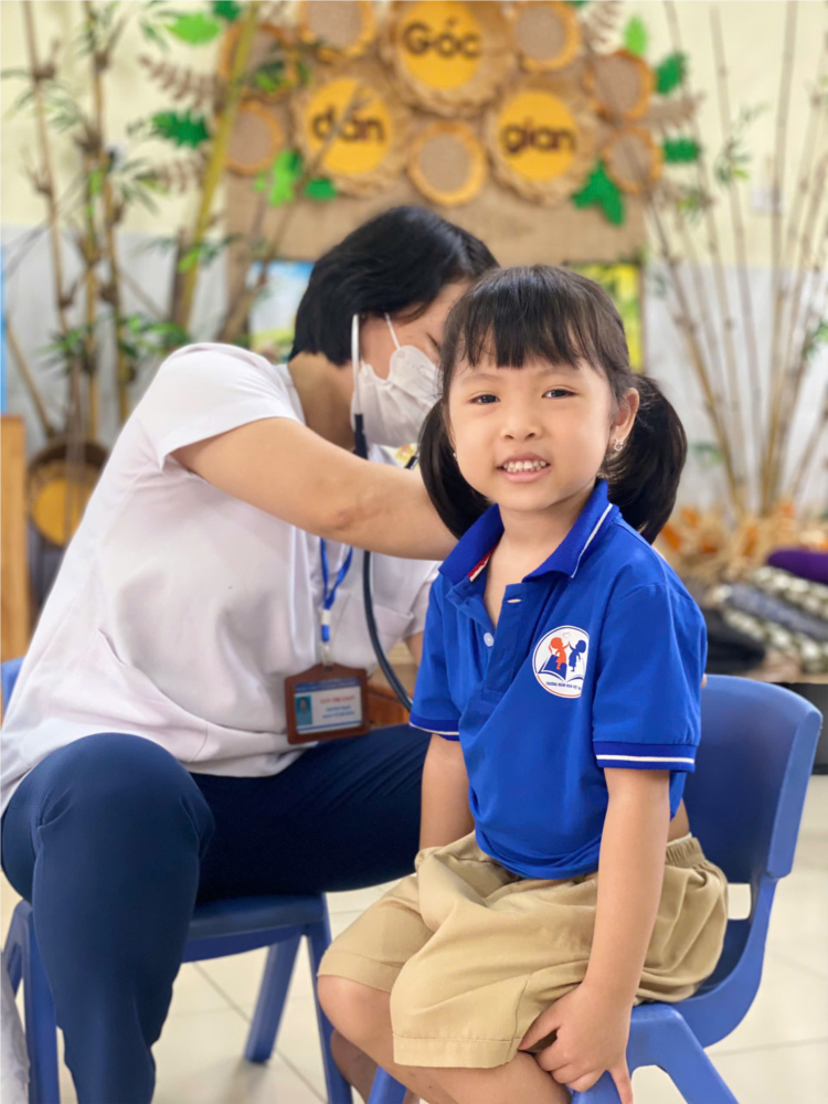 Nhà trường phối hợp với Trạm y tế phường khám sức khoẻ cho trẻ (lần 1)