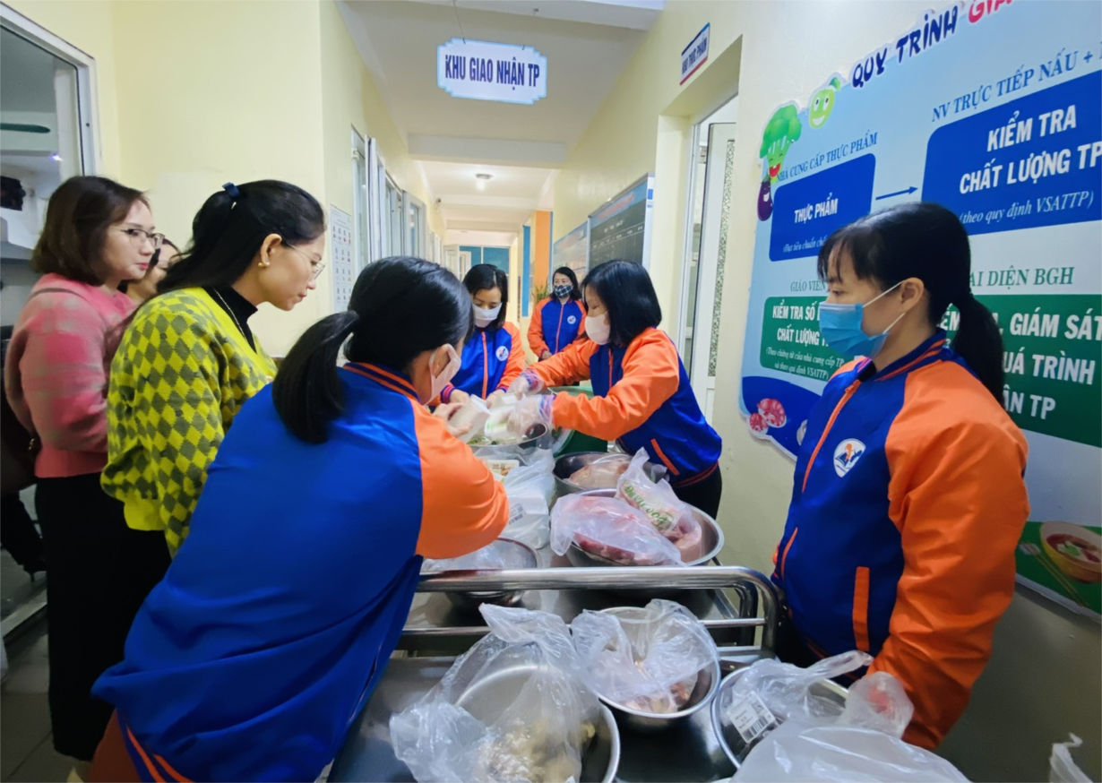 Ảnh đẹp tháng 1: Nhà trường phối hợp với Đại diện Ban phụ huynh kiểm tra công tác giao nhận thực phẩm