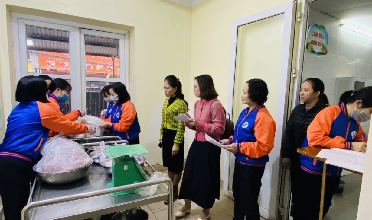 Nhà trường phối hợp với Ban phụ huynh lớp Mẫu giáo nhỡ B3 kiểm tra, giám sát công tác giao nhận thực phẩm