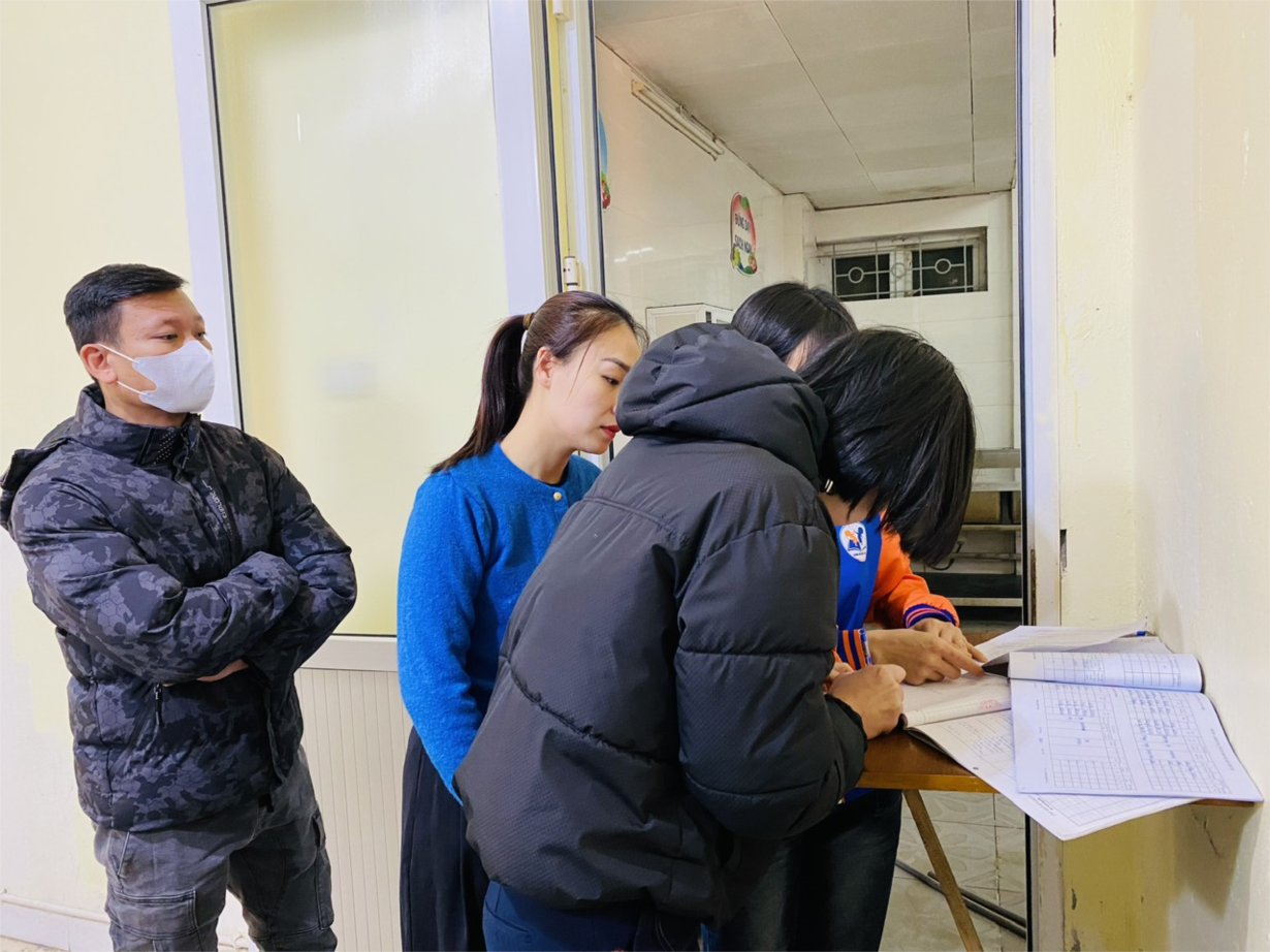 Thư viện ảnh 1: Ban phụ huynh lớp MGB C2 phối hợp với nhà trường giám sát công tác giao nhận thực phẩm