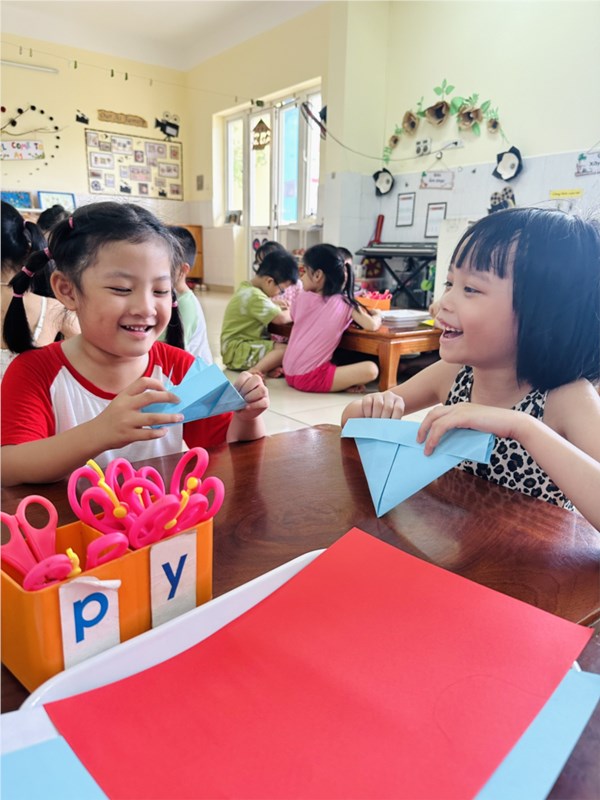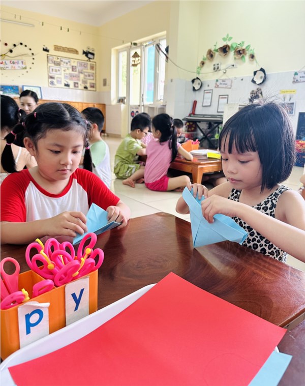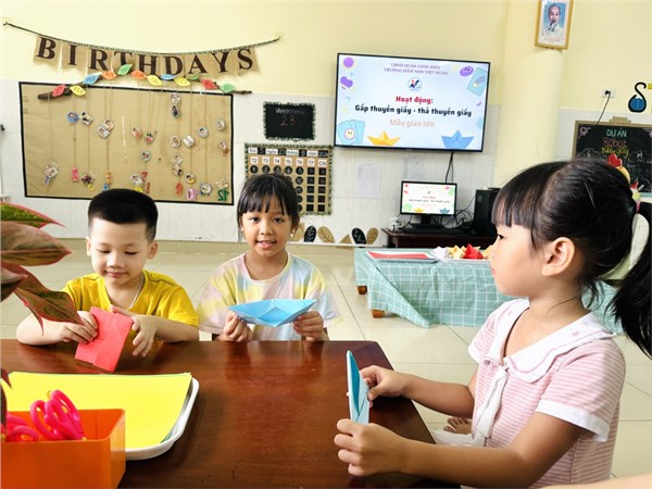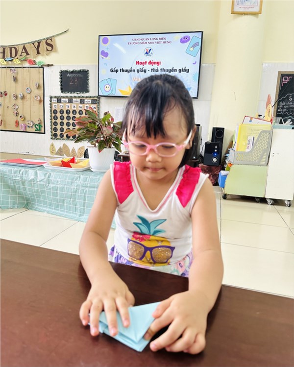 Tập ảnh : Hoạt động: " Gấp thuyền giấy, thả ước mơ" của các bé khối MGL