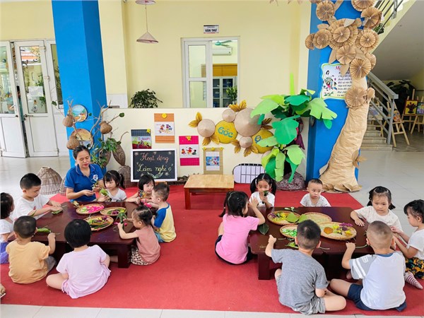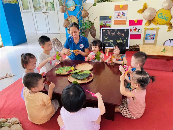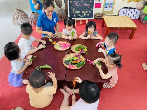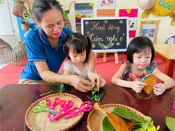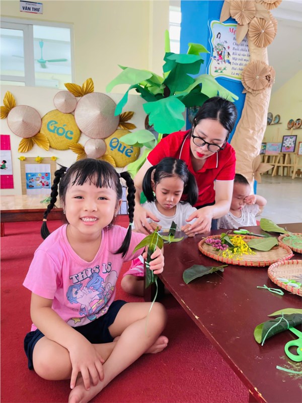 Tập ảnh : Hoạt động trải nghiệm của các bé lớp MGB C2 "Làm con trâu từ lá cây và chơi trò chơi nghé ọ"