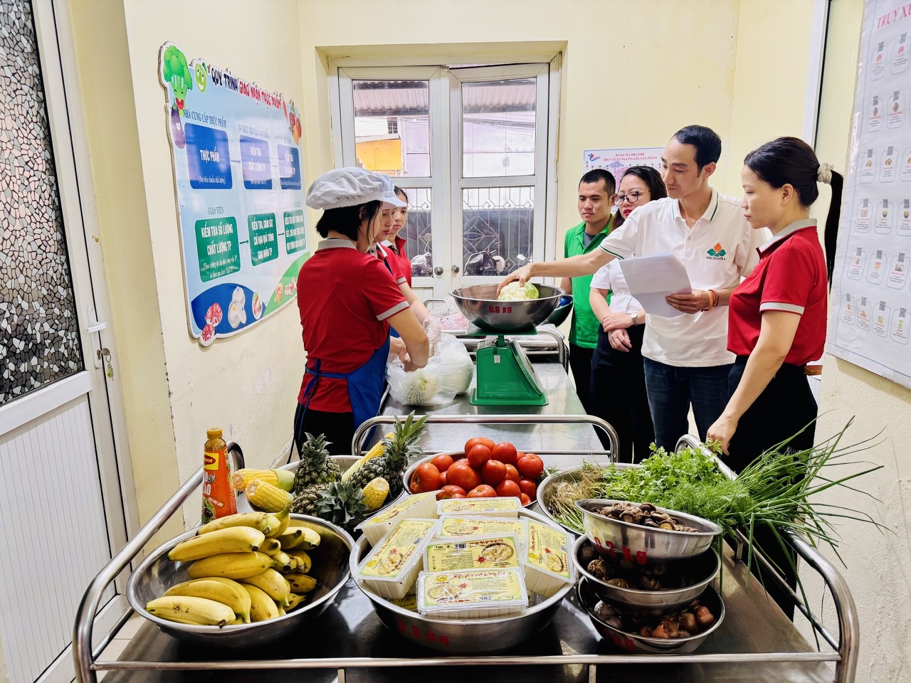 Hằng ngày, việc tiếp nhận thực phẩm được thực hiện đầy đủ với sự tham gia của các thành phần. Các thành viên trong Đoàn kiểm tra giám sát, quét mã truy xuất nguồn gốc thực phẩm tươi ngon đảm bảo số lượng đến chất lượng thực phẩm.Sự phối hợp giữa phụ huynh học sinh và nhà trường trong công tác giao nhận thực phẩm đảm bảo an toàn vệ sinh thực phẩm và chất lượng bữa ăn bán trú, giúp tăng cường tính công khai, minh bạch và tạo sự yên tâm, tin tưởng đối với công tác chăm sóc nuôi dưỡng trong nhà trường. Đây chính là nền tảng vững chắc giúp các con phát triển khỏe mạnh và hạnh phúc mỗi ngày.