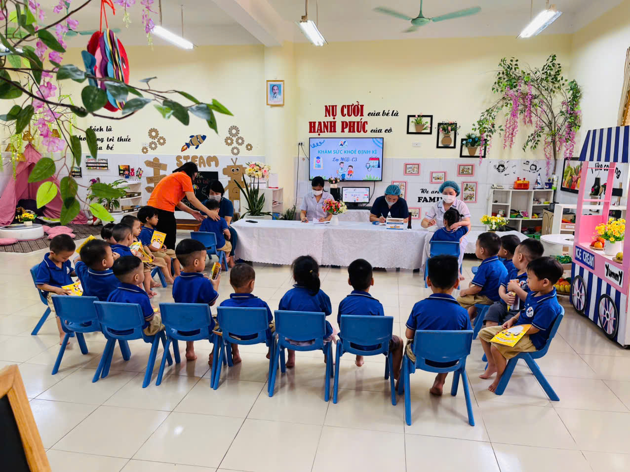 Hoạt động diễn ra trong không khí nhẹ nhàng, vui vẻ, tại buổi khám, các Y Bác sĩ tiến hành kiểm tra chiều cao, cân nặng, răng miệng, mắt, tai mũi họng… nhằm theo dõi sự phát triển thể chất và kịp thời phát hiện các bệnh lý thường gặp. Từ đó tư vấn cho phụ huynh về chế độ dinh dưỡng của trẻ.