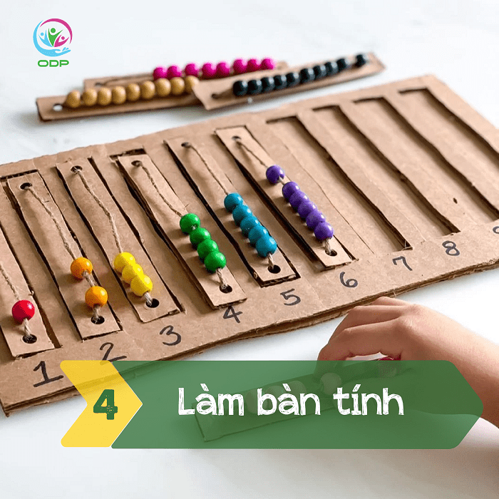 - Lắp các miếng chữ nhật đã có chuỗi hạt vào đúng các ô số tương ứng với số hạt.