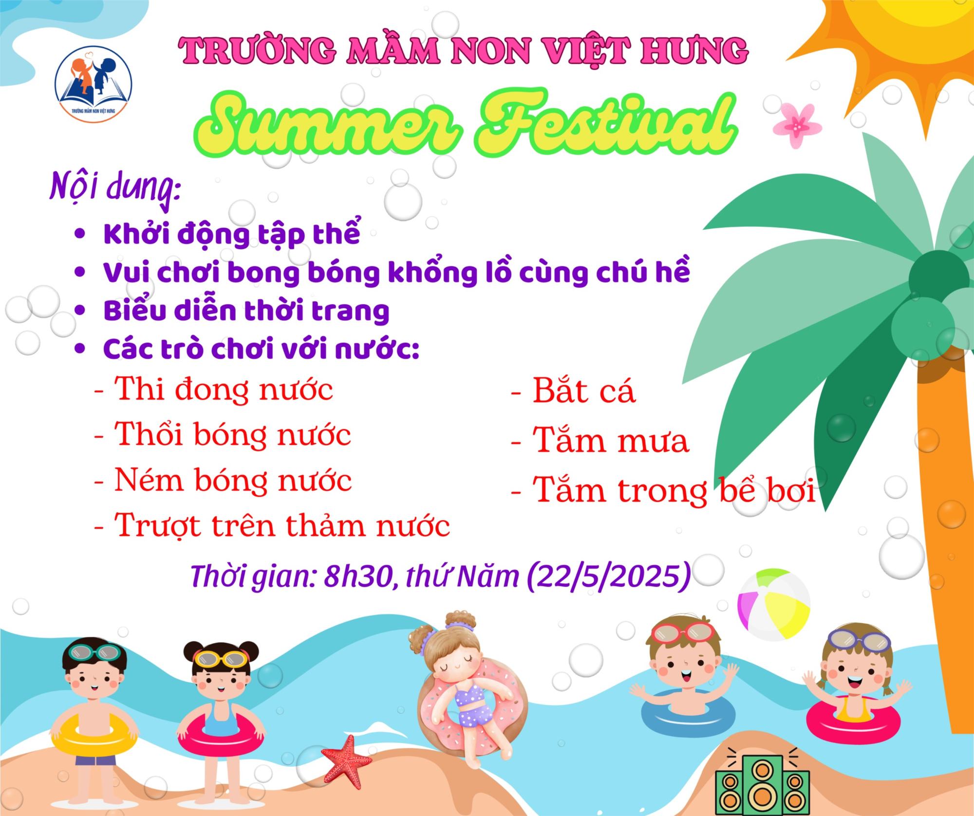 Và mùa hè sẽ trở nên đặc biệt hơn với các bé yêu Trường mầm non Việt Hưng khi các bé cùng hoà mình vào sự kiện “ Summer Festival - Lễ hội mùa hè”