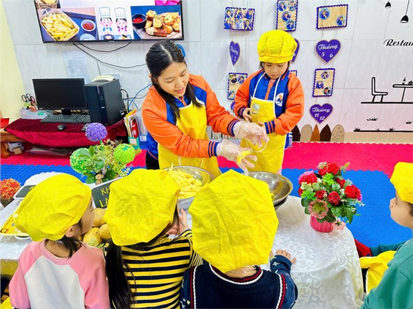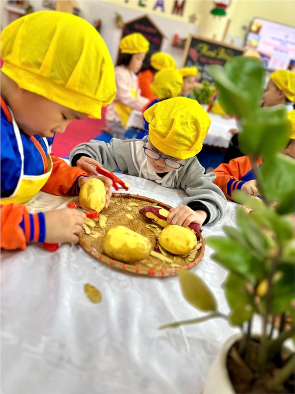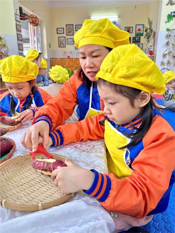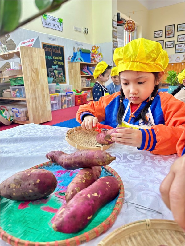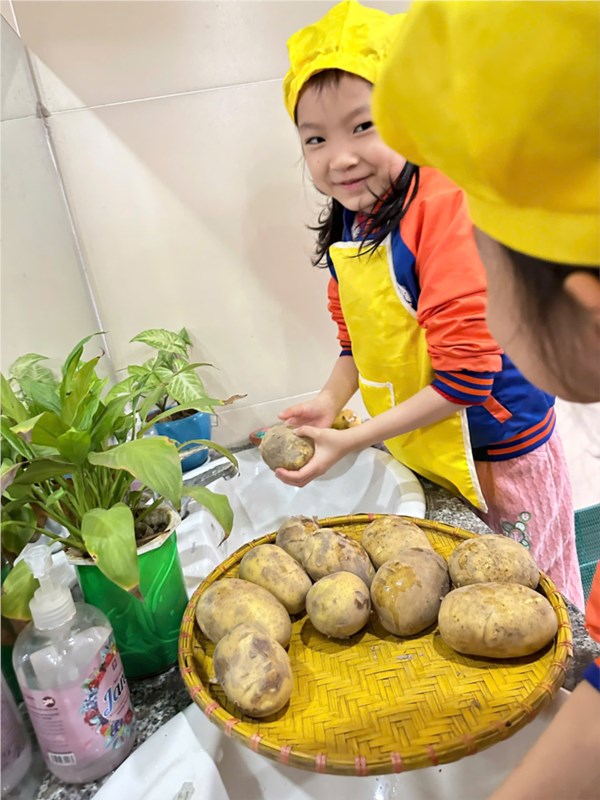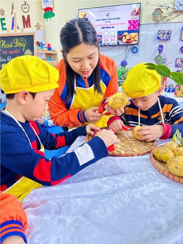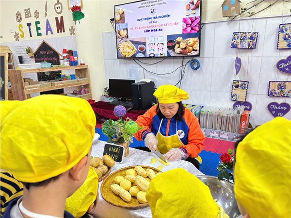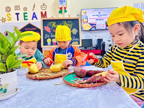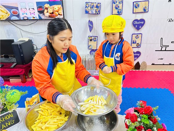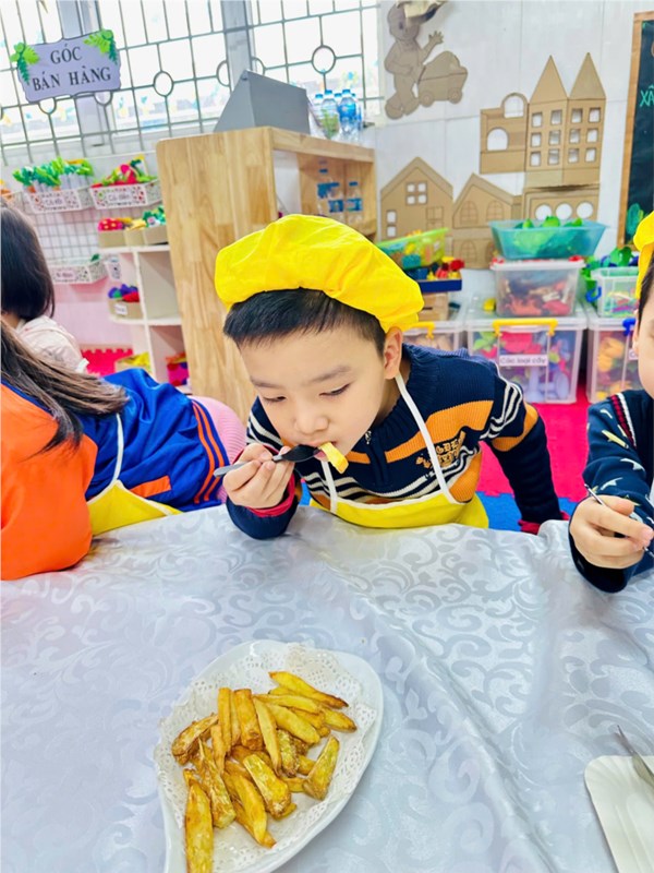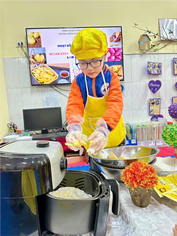 Tập ảnh : Thư viện ảnh tháng 2: Bé tập làm nội trợ với món khoai chiên ngon miệng.