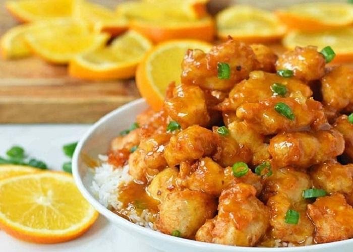 - Cho 2 muỗng dầu ăn vào chảo phi thơm tỏi băm, đổ nước sốt cam vào chảo đun sôi với lửa nhỏ, rồi xếp gà vào, đun đến khi hỗn hợp sền sệt là được.