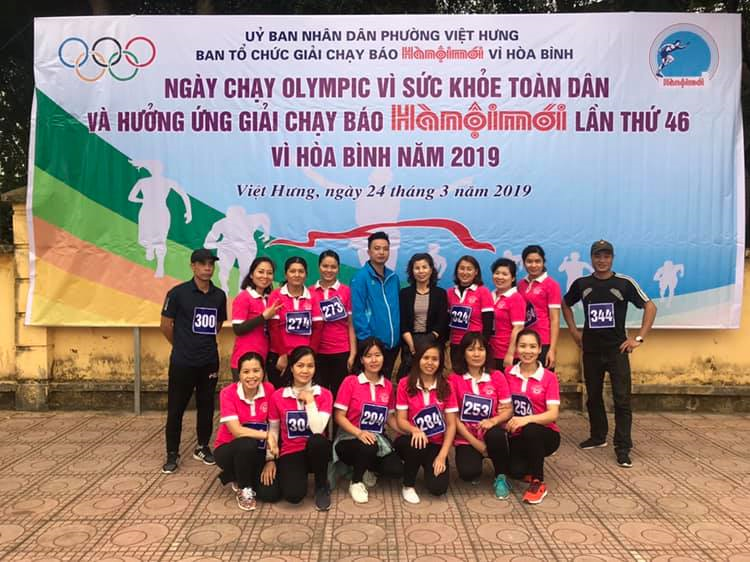 Sáng ngày 24/3/2019 các đ/c CBGVNV trường mầm non Việt Hưng tham gia Ngày chạy Olympic và giải chạy Báo Hànộimới – Vì hòa bình lần thứ 46 tại tuyến đường 25m – tổ 2, UBND phường Việt Hưng do UBND phường Việt Hưng tổ chức.